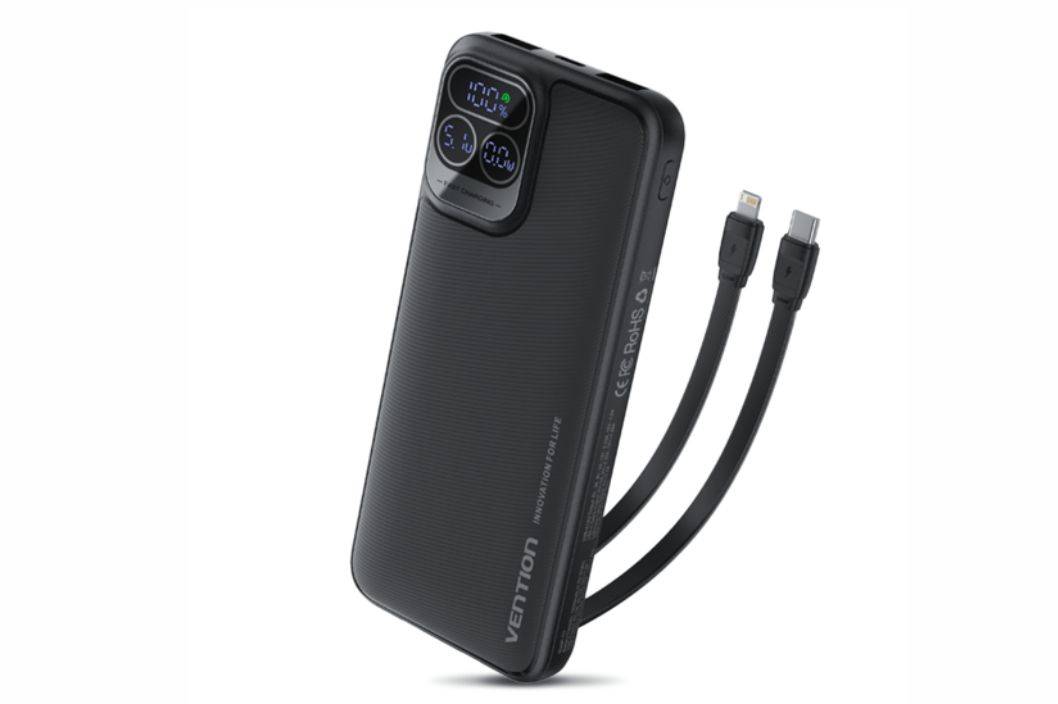 Vention Powerbank Built-in Cable USB C & Lightning 22.5W LED Display 10000mAh I13