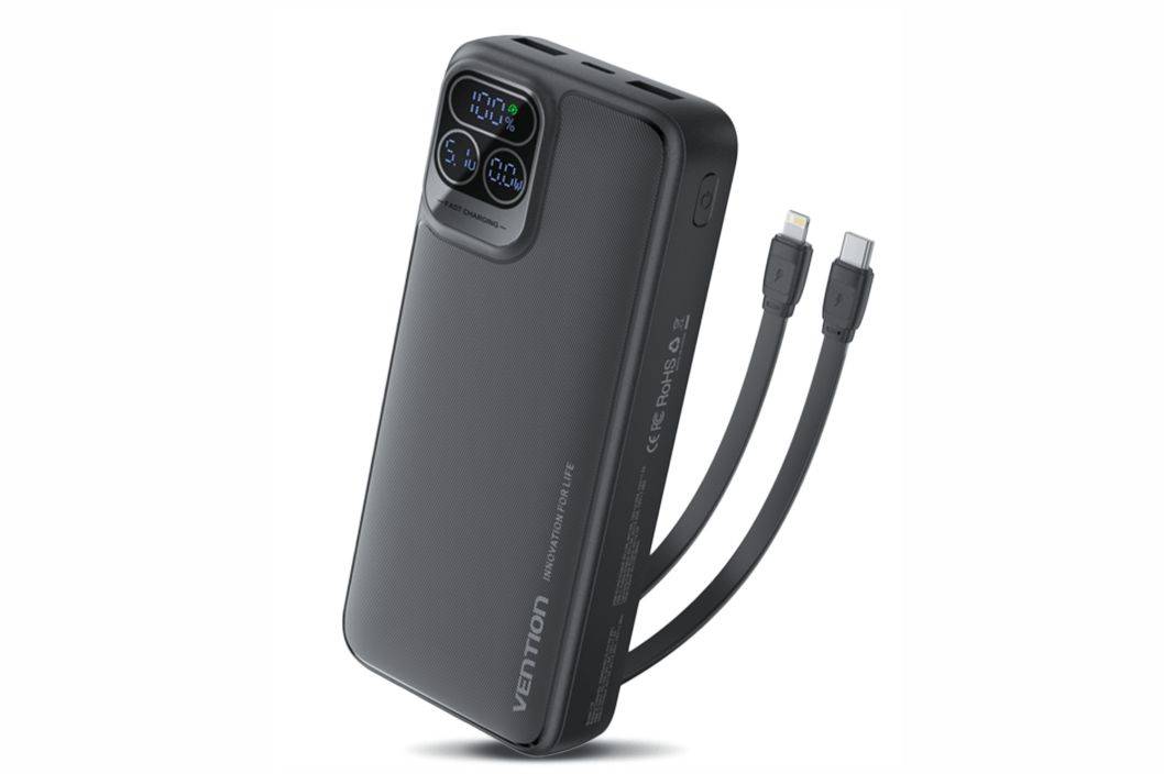 Vention Powerbank Built-in Cable USB C & Lightning 22.5W LED Display 20000mAh I15