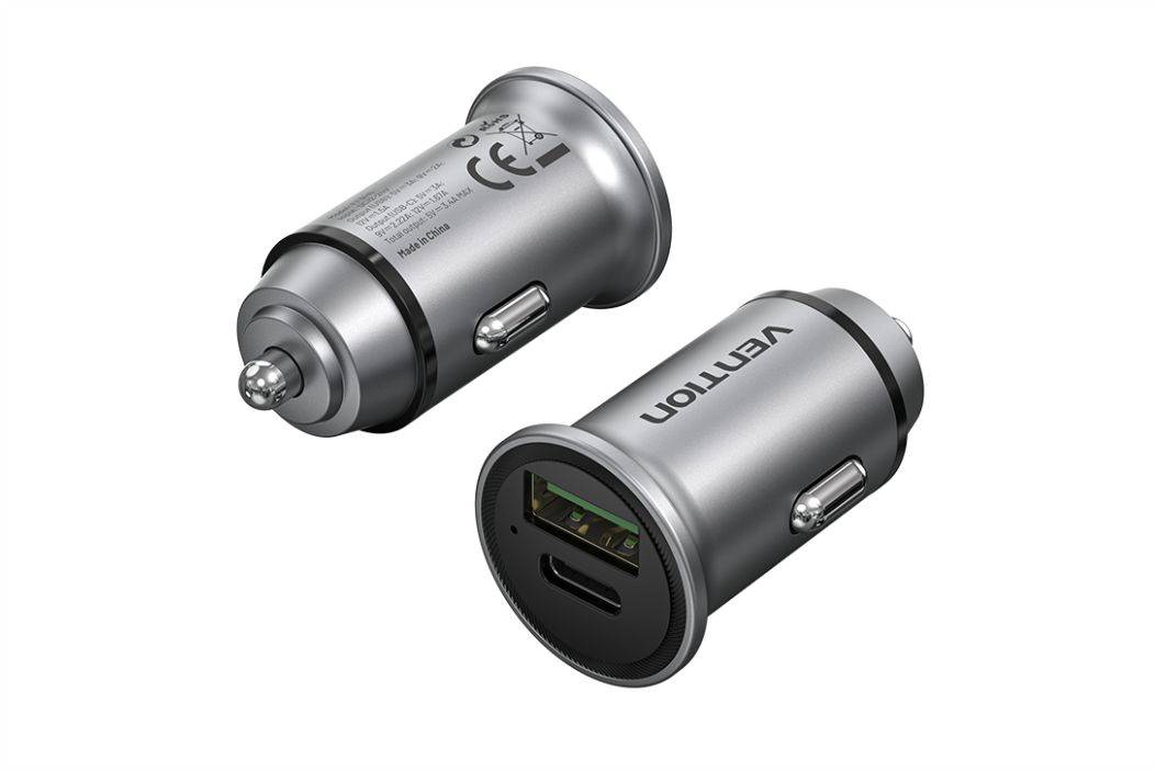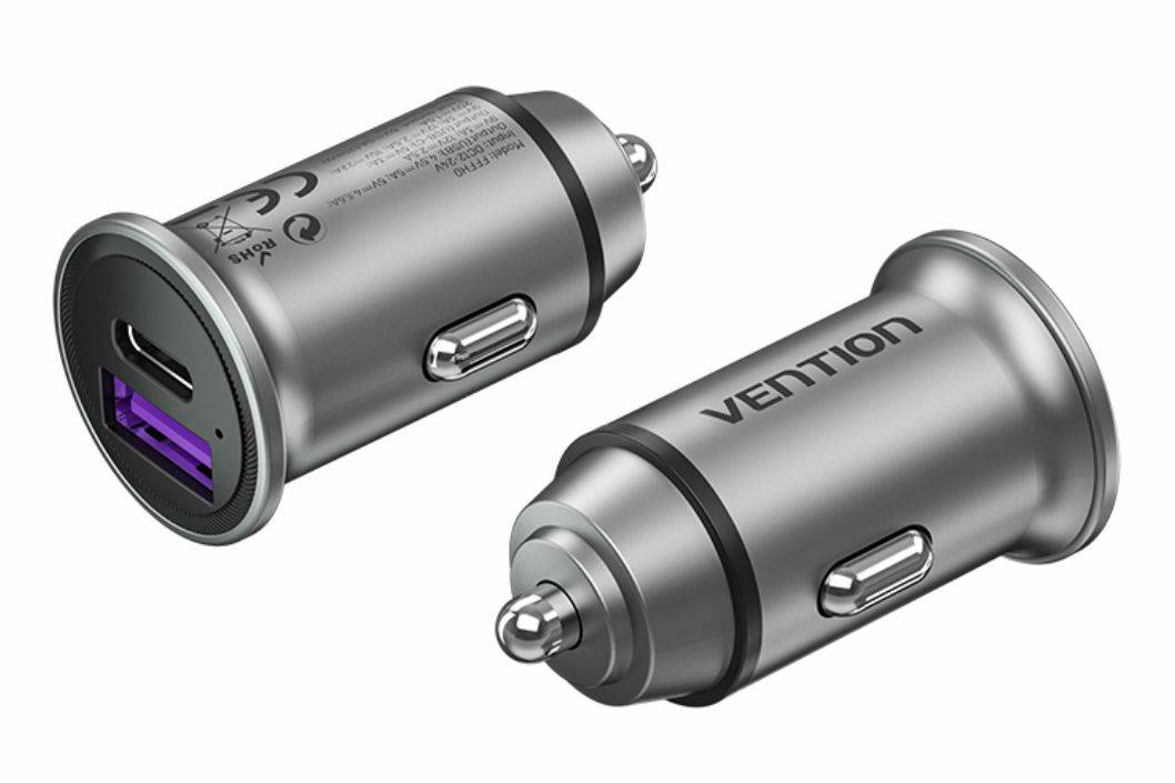 Vention Car Charger Mobil Dual USB Port USB A+C QC Quick Charge FFB