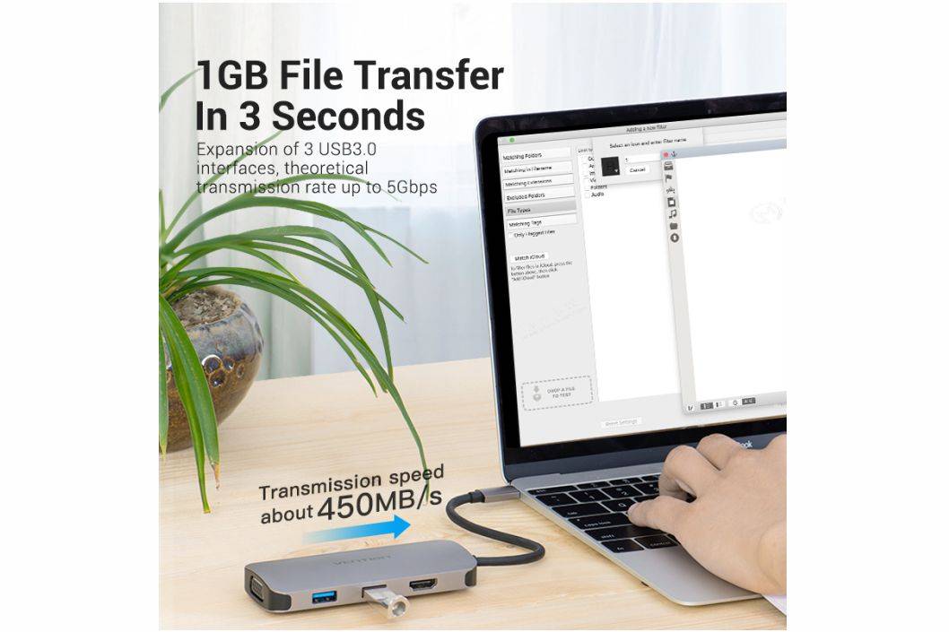 Vention USB HUB Type C 3.1 to USB 3.0 HDMI VGA PD MACBOOK THC