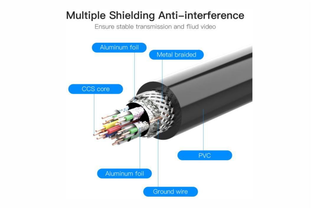 Specifications :🔹 Length : 0.5M / 1M / 2M / 3M / 5M🔹 Connector Interface : HDMI Male to Female🔹 Connector Material : Gold plated🔹 Conductor : CCS🔹 Shielding : Aluminum Foil + Metal Braided🔹 AWG : 30AWG🔹 Jacket : PVC