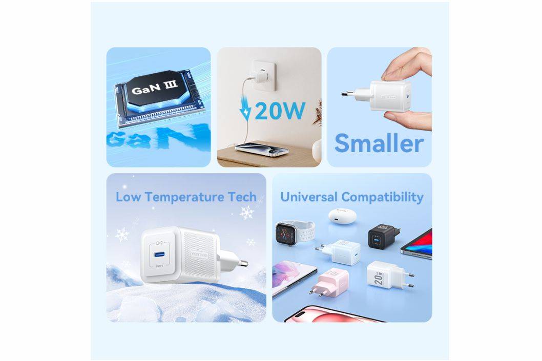 Vention Adaptor Kepala Charger USB-C Type C 20W PD GaN Fast Charging FEP