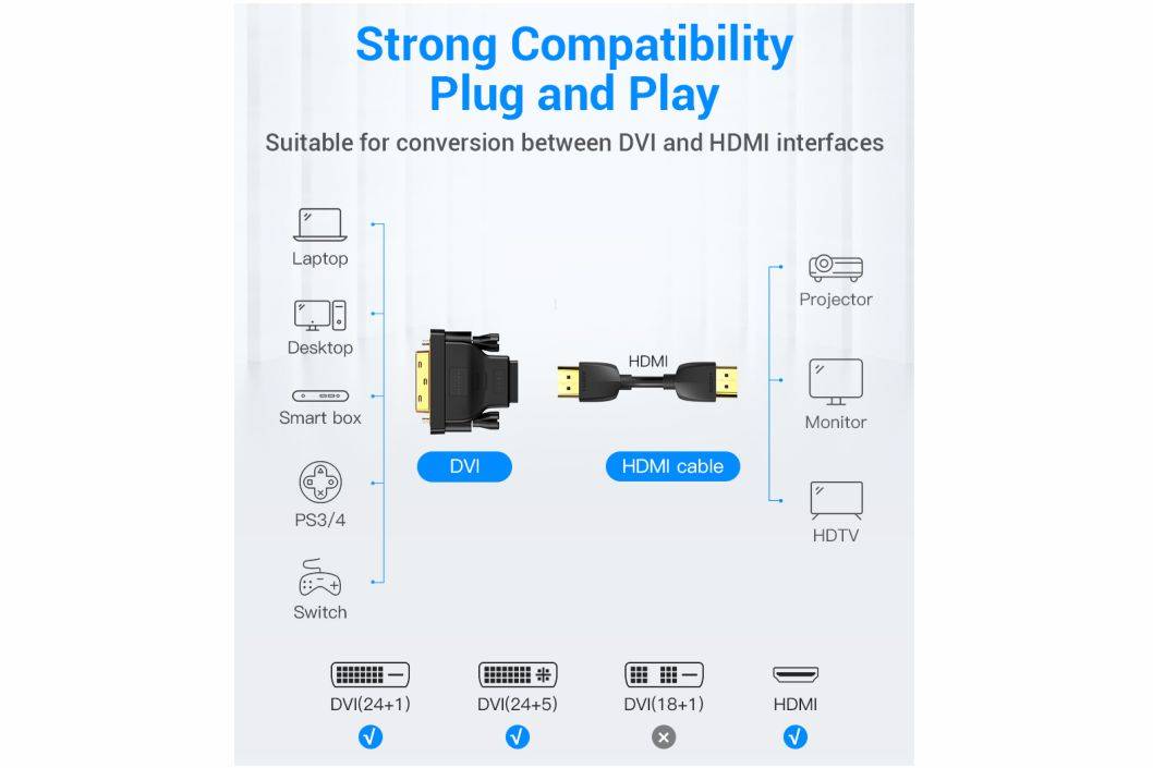 ⭐️ Vention Adapter Converter DVI-D (24+1) to HDMI ⭐️