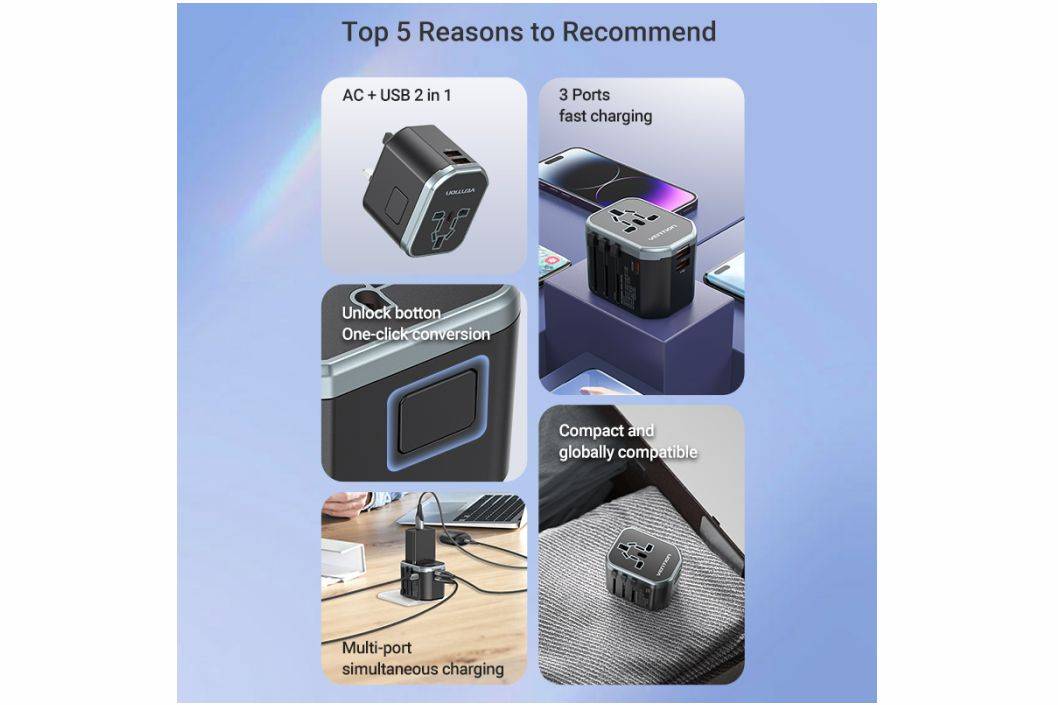 🔹 Universal adaptor support US Plug, AU Plug, UK Plug, EU Plug