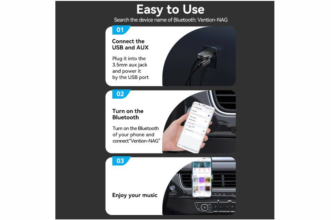 ⭐️ Vention Car Bluetooth Mobil Wireless Receiver Audio Aux 3.5mm Hi-Fi ⭐️