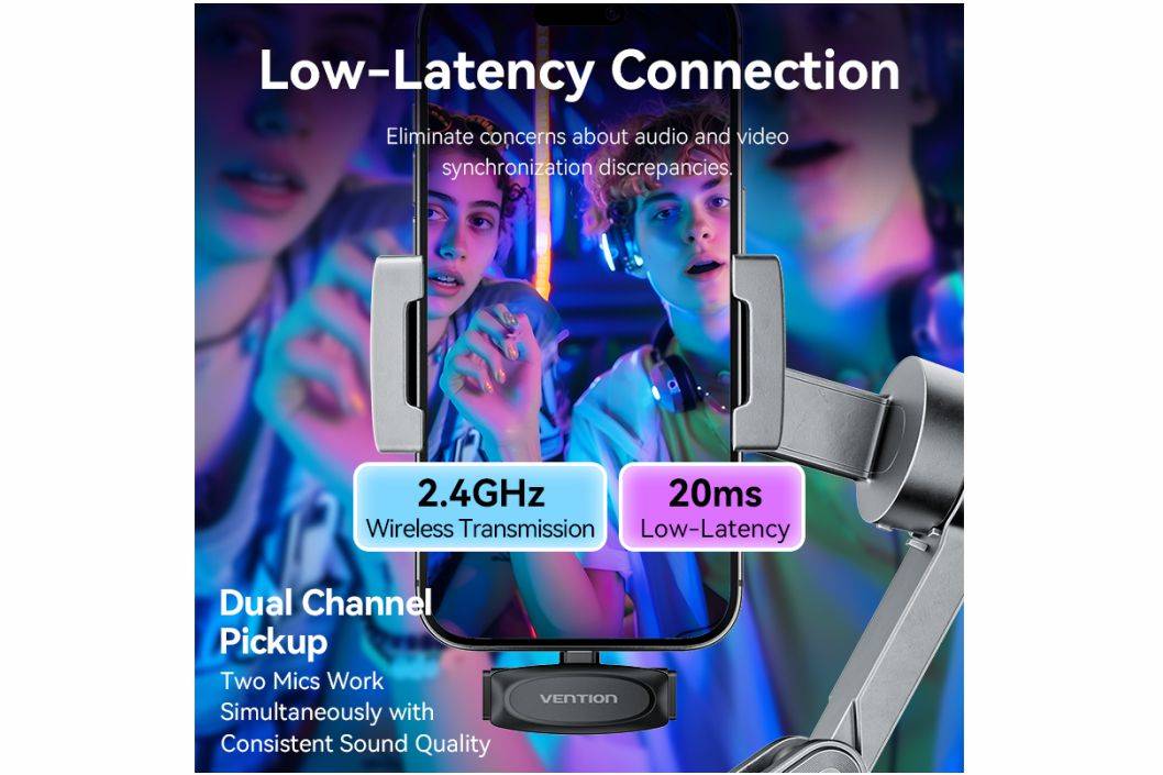 Vention Microphone Wireless Mic Clip-On Live Streaming Mike Dual Channel NCB Original