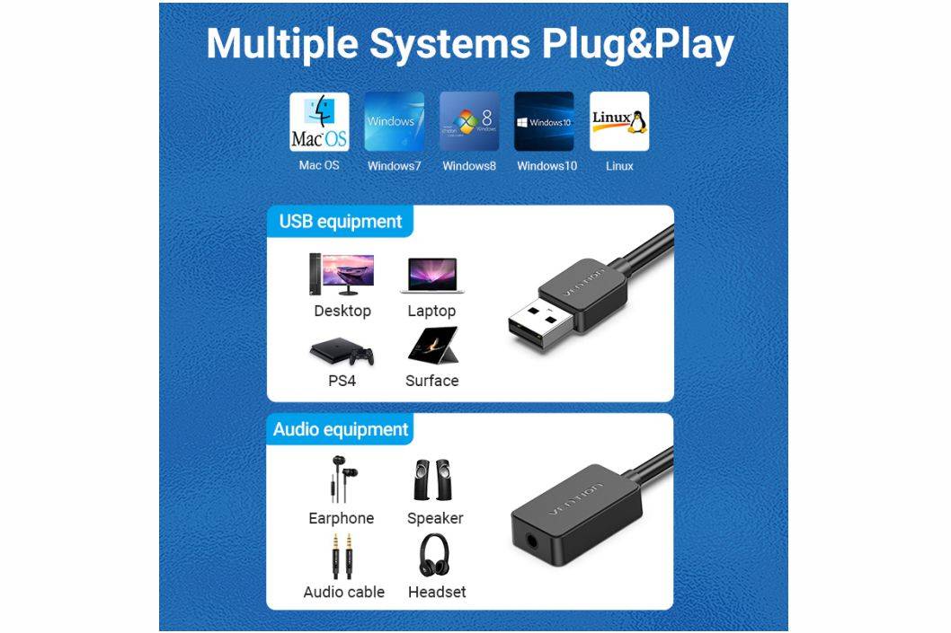 Vention Usb Sound Card External USB A to Aux 3.5mm CDZ