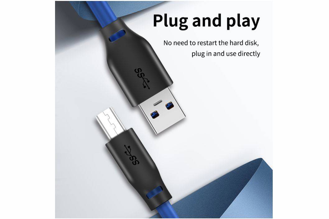 🔸Specifications : Length : 1M / 2M / 3M Input & Output : USB A 3.0 Male to USB-B Male Connector Material : Nickle-plated Jacket : Blue Matted PVC Shell : Aluminum Foil + PVC Shell OD : 4.5mm