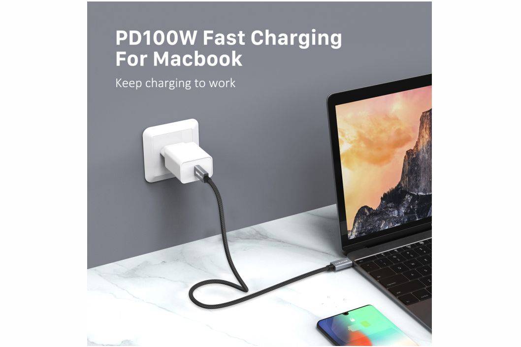 CABLETIME Kabel Data USB-C to USB C 4K Display Thunderbolt 3 40Gbps PD 100W Fast Charge Premium Braided CT31