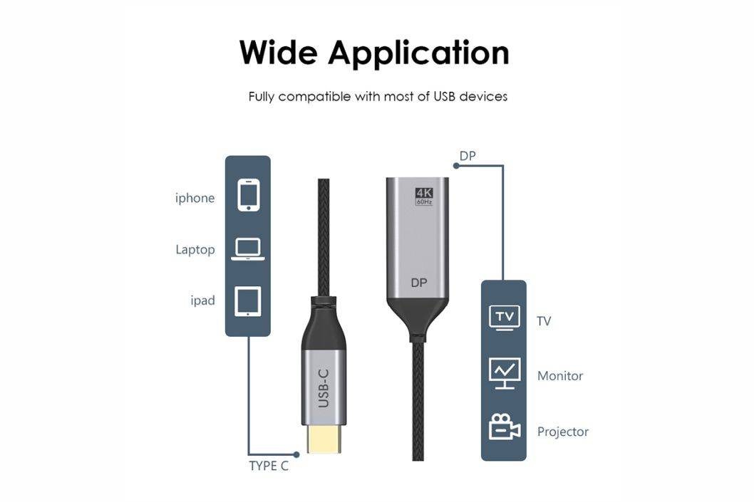 CABLETIME Converter USB-C to DisplayPort Female 4K Thunderbolt Adapter CP13