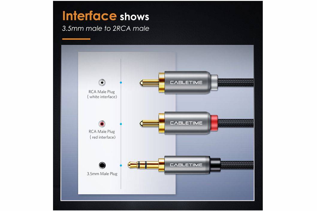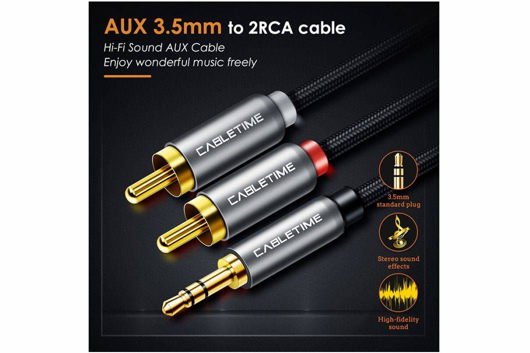 1 pcs Cabletime Aux 3.5mm Male to 2RCA Male