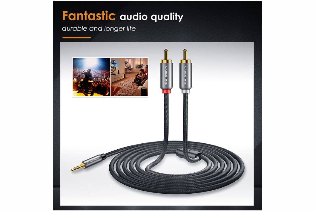 ⚡️CABLETIME Kabel Aux to RCA Audio 3.5mm Male to 2 RCA Male Converter Hi-Fi Sound⚡️