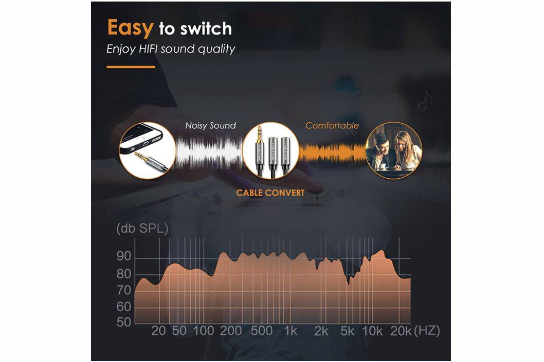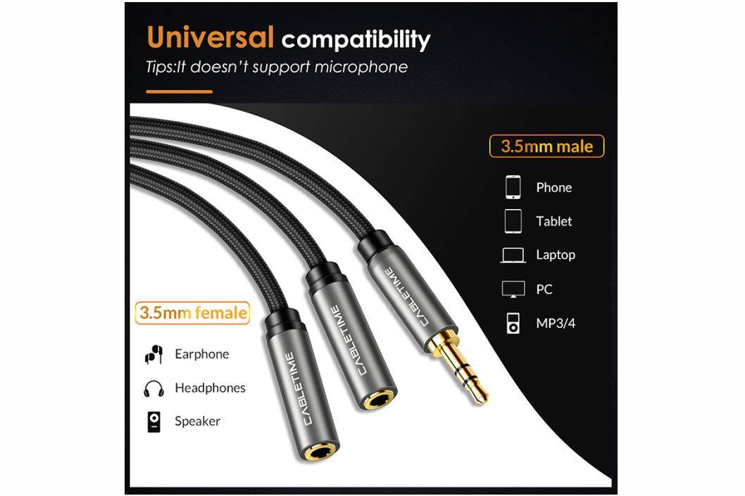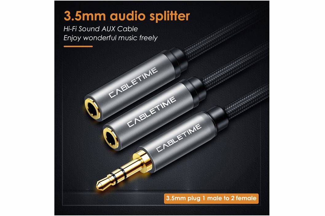 Specifications CF13B :🔸Length : 0.2M🔸Connector Interface : Aux 3.5mm Male to 2 Aux 3.5mm Female🔸Connector Material : Gold-plated🔸Material : Aluminum Shell🔸Jacket : Braided Jacket🔸Wire : 28AWG