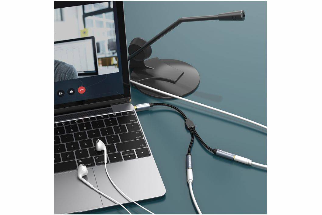 CABLETIME Kabel Splitter Audio Mic Aux 3.5mm to two 3.5mm Aux Female Braided Hi-Fi Clear Sound Braided CF14B