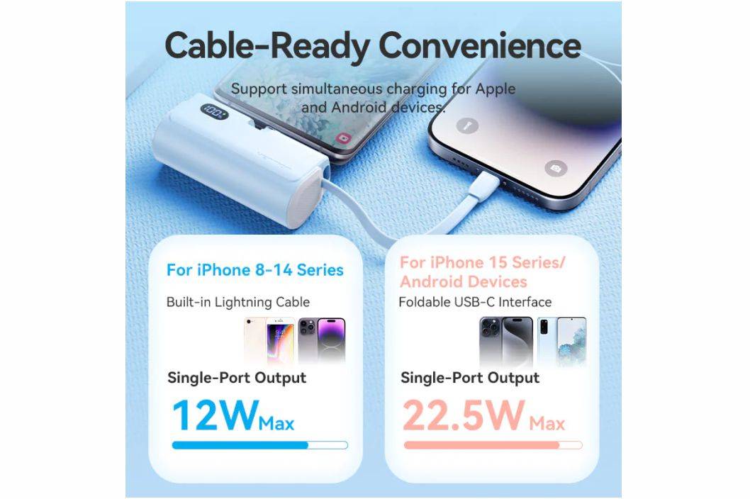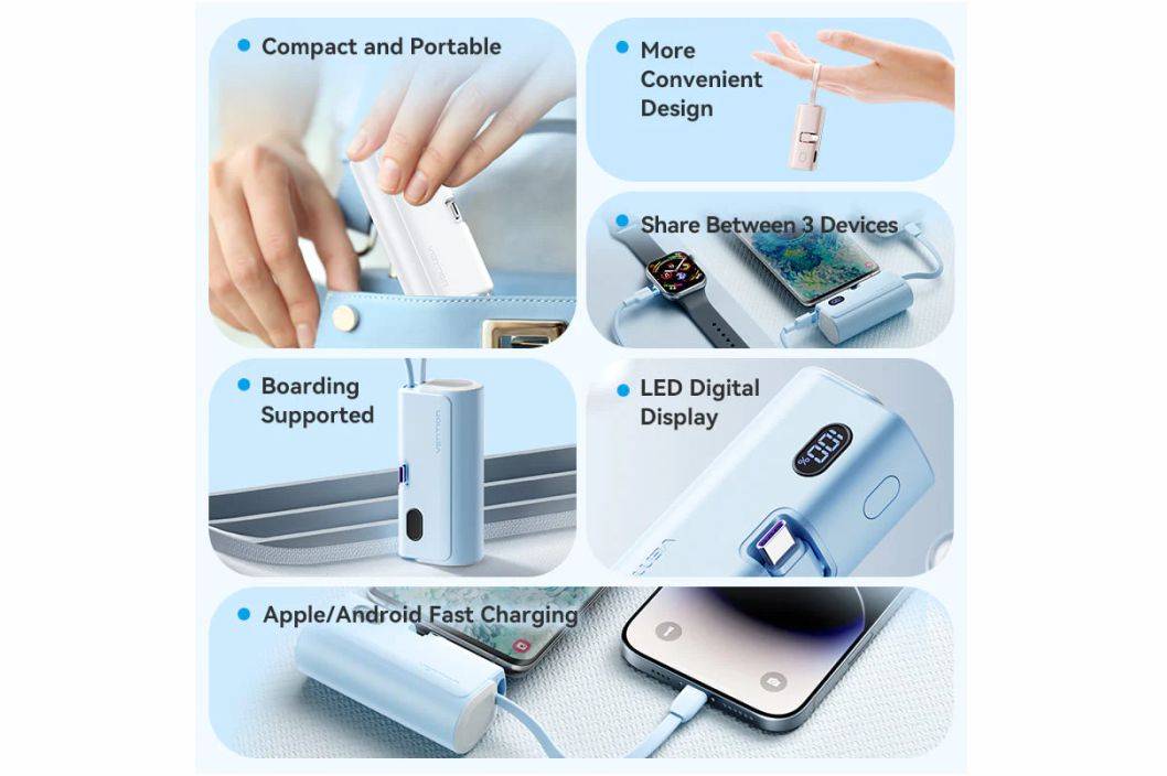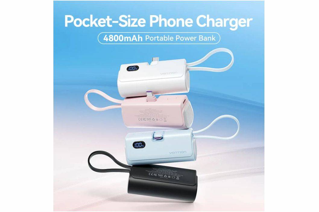 ✨ Vention 4800mAh Pocket Recharge✨🔹FHQ : Type C + Built in Lightning Cable