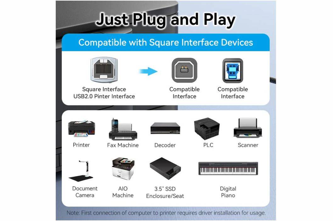 Specifications : 🔹 Length : 0.5M / 1M / 2M / 3M / 5M / 10M 🔹 Connector Interface : USB 2.0 Type A Male to B Male 🔹 Connector Material : Nickel-plated 🔹 Conductor : CTT : Tinned-copper 🔹 Shielding : Aluminum Foil + Metal Braided + GND 🔹 AWG : 24+28AWG 🔹Rated Current : 2A 🔹 Jacket : CTT : PVC + Cotton Braided