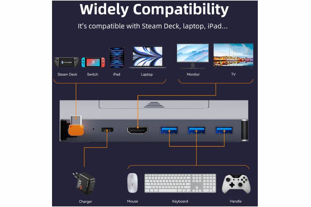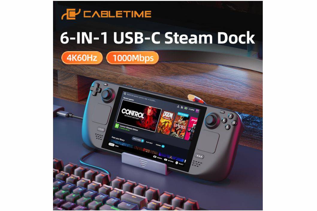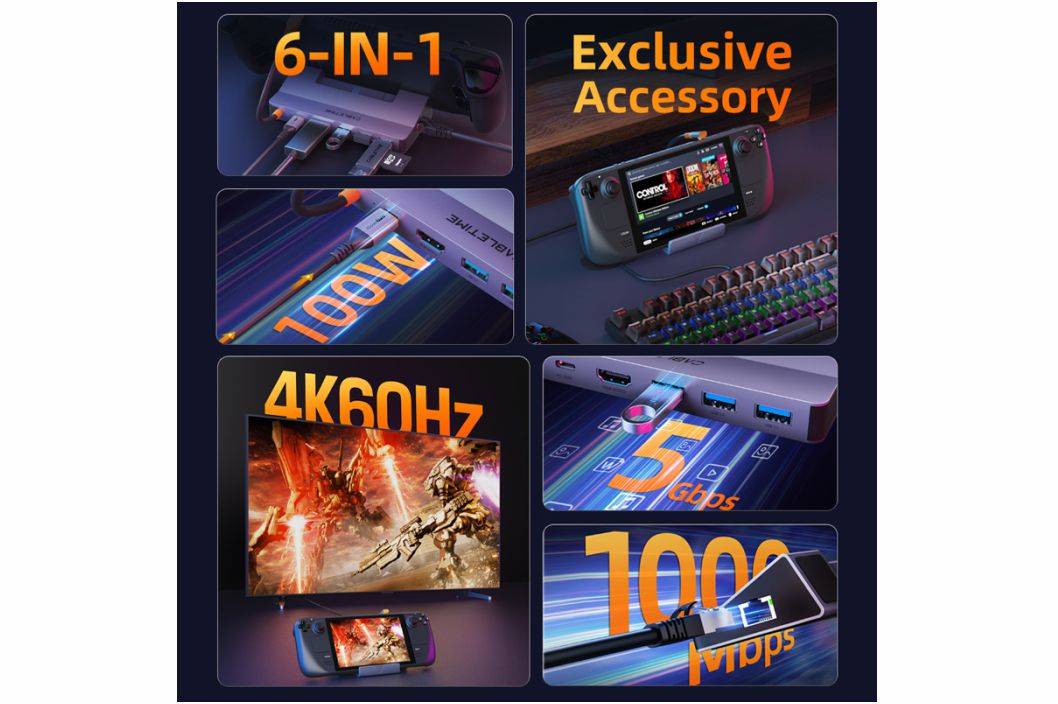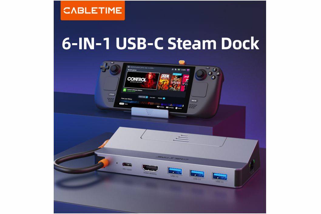 CABLETIME USB C Type-C Steam Deck Rog Ally Legion go Dock Hub 4K @60hz HDMI Ethernet PD CB05G