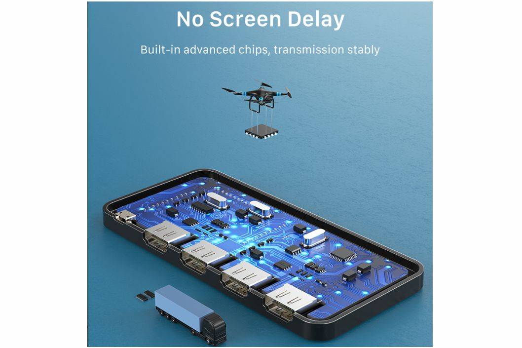 Switcher HDMI 3-in-1 ini memberikan semua kontrol yang butuhkan. Seperti remote untuk mengganti antara 3 input HDMI hanya dengan menekan tombol ke 1 Output HDMI
