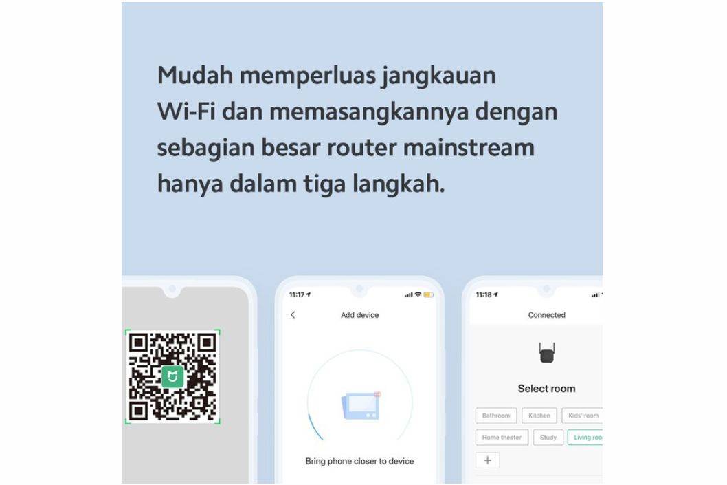 Catatan: Temukan lokasi terbaik dengan aplikasi Mi Home Untuk hasil terbaik, Mi wifi range extender pro harus ditempatkan di lokasi antara router dan zona mati dan dengan sinyal router yang kuat dan stabil. Anda dapat memeriksanya melalui Aplikasi Mi Home.