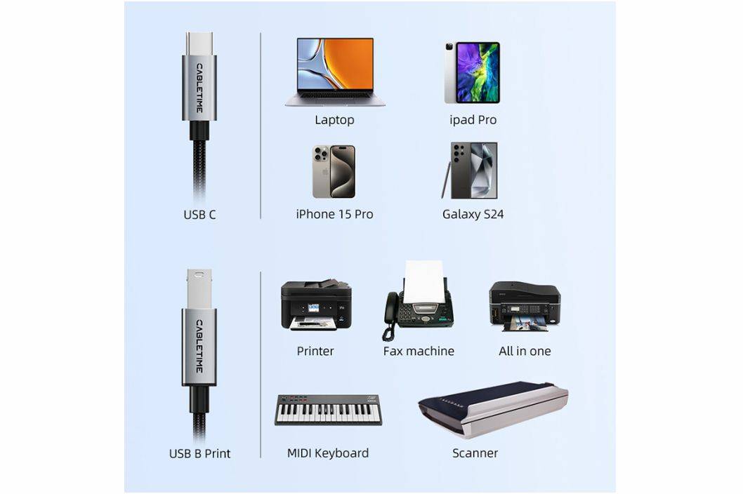 ⚡️Kabel Printer USB-C to USB-B Male to Male USB Type C to B High Speed Scanner Printer DAC⚡️