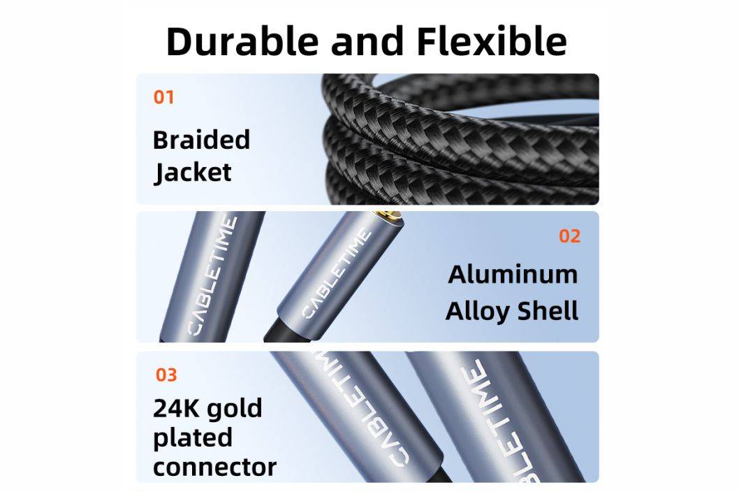 Specifications :Length : 2M / 3M / 5M / 10M / 15MConnector Interface : Aux 3.5mm to 6.5mm Male to MaleConnector Material : Gold-PlatedWire Core : Tinned CopperMaterial (CF25 ) : Aluminum Shell + Braid JacketAWG : 28AWGOD :4.0mm