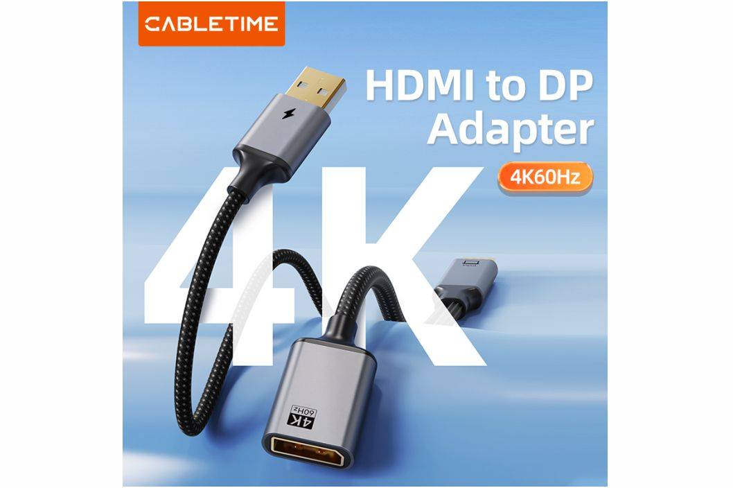 CABLETIME Converter HDMI Male to Displayport Female 4K60Hz with USB Power Portī¸