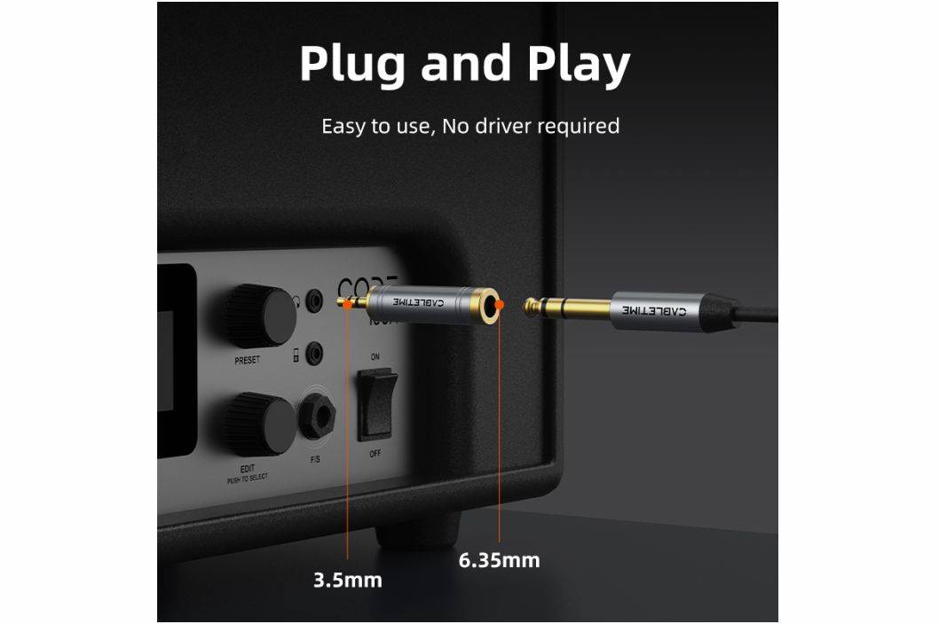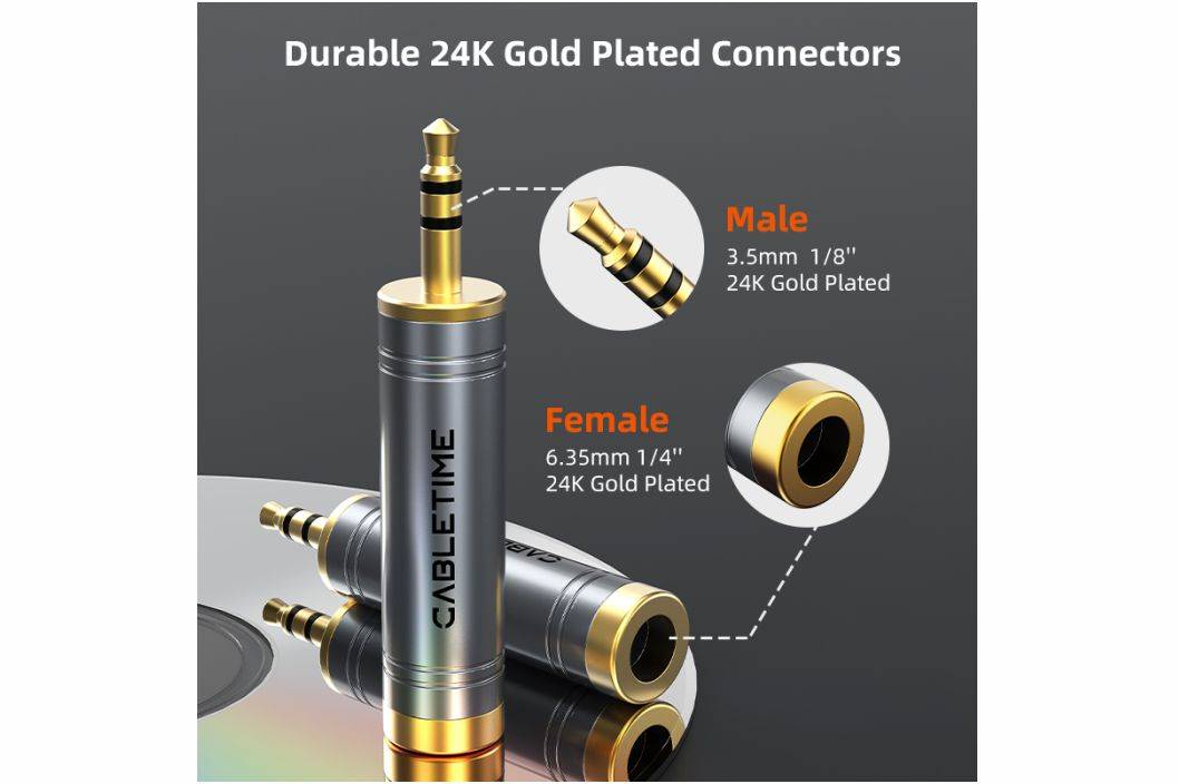 CABLETIME Jack Aux 3.5mm Male to 6.35mm Female Audio Adapter Converter