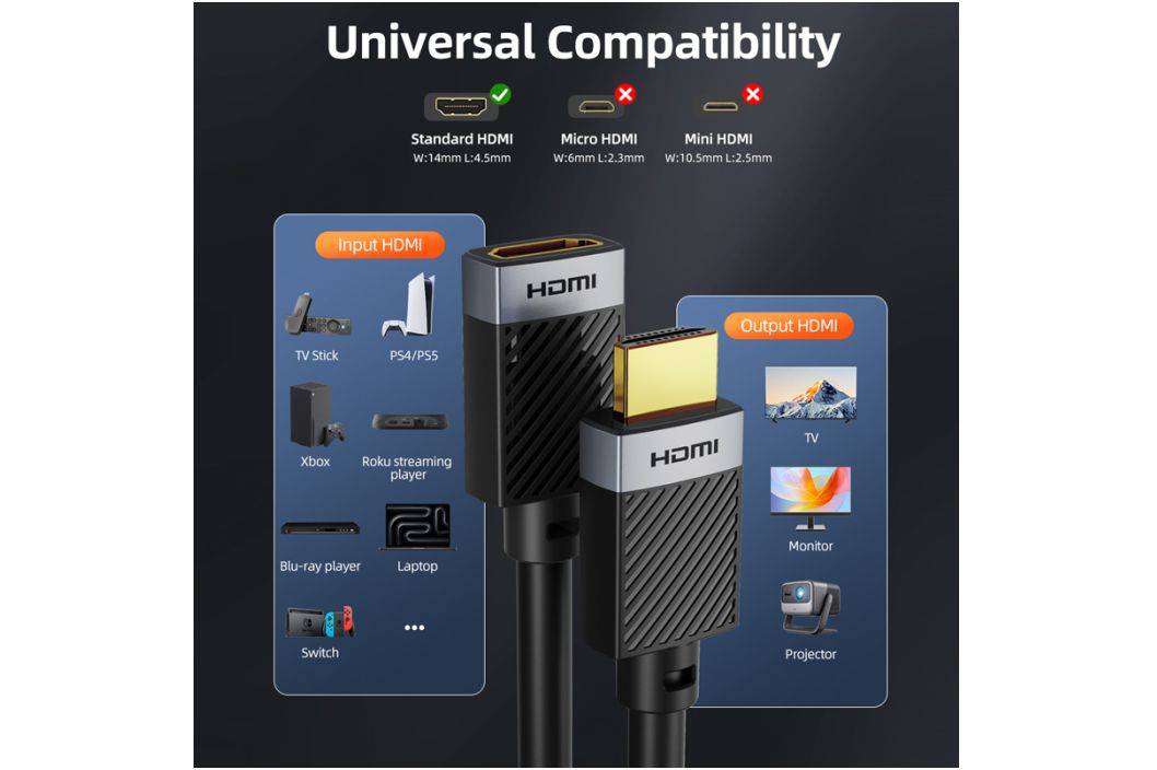 Input & Output : HDMI Male to Female v2.0