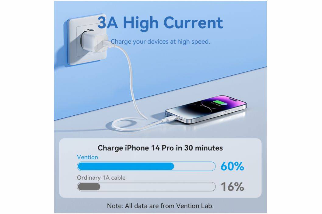 SPECIFICATIONS: Brand : Vention Product : USB 2.0 Type C to Lightning Conductor : Tinned Copper Interface : USB-C Male/Lightning Male Electroplating Process : Nickel-Plated Data Transfer Rates : 480Mbps Rated Current : 3A Shell : PVC Shielding : Aluminum Foil Jacket : PVC Length : 1m/2m Color : Black