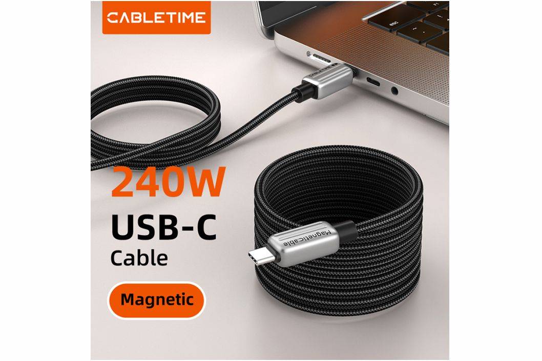 CABLETIME Kabel Charger Data Magnetic USB Type-C USB-C PD 240W 5A 480Mbps Ultra Fast Charging CU08